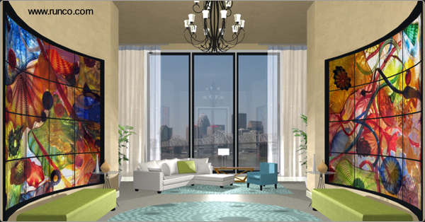 Runco WindowWall es un sistema de pantallas LCD que se despliega en la pared, trabajando junto a los arquitectos y diseñadores permite integrar soluciones visuales y complementar diseños únicos para el hogar.
