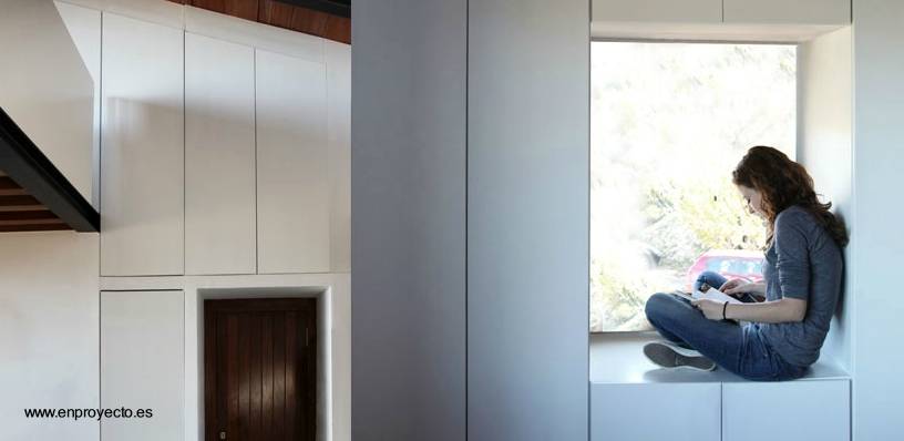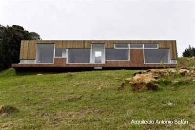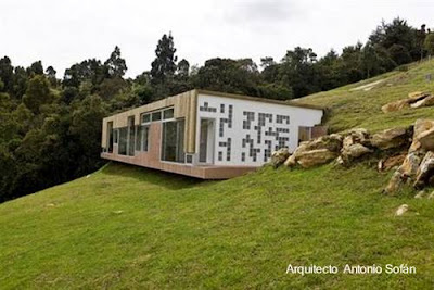 Desde arriba, aproximándose a ella parece una empalizada tumbada con una puerta abierta. Esta localizada en Santa Elena de Antioquia, Colombia. La superficie cubierta es de 1.000 pies2 y está construida con materiales del lugar y sustentables.