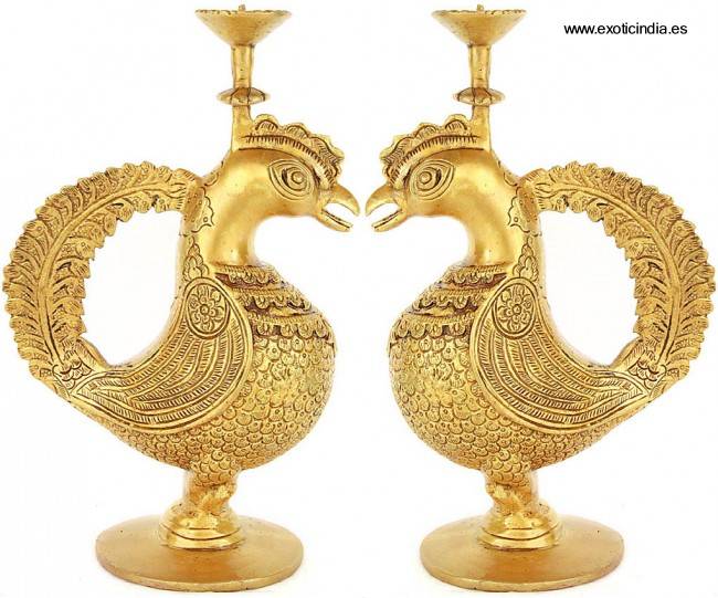 Par de candelabros en bronce, indios, con la forma de gallos, consulte en el vínculo la forma de adquirirlos.