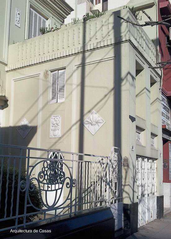 El Art Decó de esta casa combina ornamentaciones de diseño orgánico (motivos de la naturaleza) con diseño geométrico. En una primera etapa del Movimiento Art Decó predominó el uso de flores, frutos y plantas, luego pasaron a primer plano las formas geométricas y diseños egipcios.