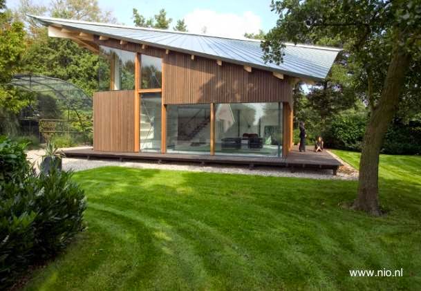 - Vea una moderna casa de campo hecha de madera de planta triangular en Holanda, publicada en el sitio web asociado.