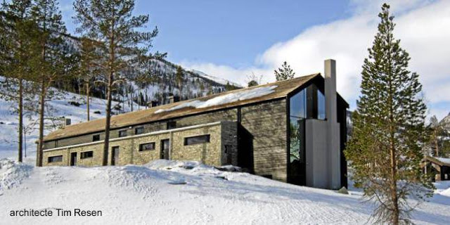 Se encuentra a tres horas de Oslo por ruta, es un refugio de montaña para dos familias, está dividido en dos apartamentos equivalentes y ubicado frente a las pistas de esquí. Este moderno chalet de montaña es una obra del arquitecto Tim Resen y está inspirado en los chalets tradicionales.