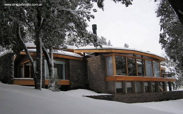 Vea otra casa de montaña en Bariloche, una con diseño de techo alado y aspecto de chalé, siga este enlace a otra entrada.
