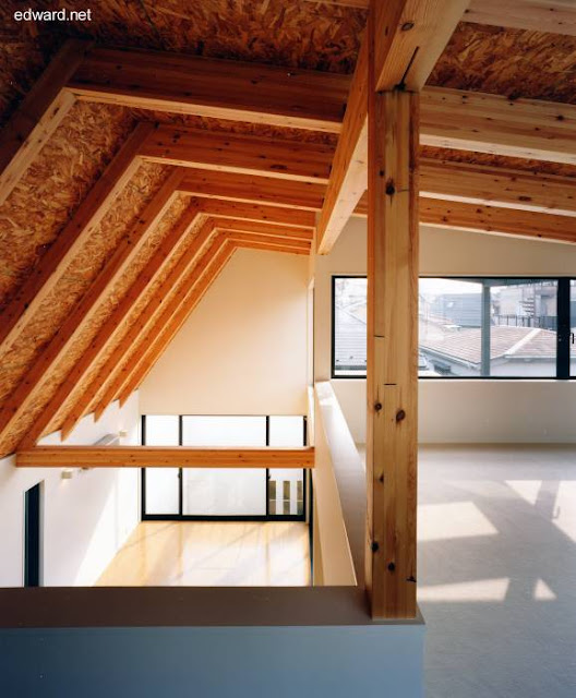 Vea otra casa urbana japonesa forma cuboide, original tatuada por fuera, que sirve de vivienda como espacio para trabajar en peluquería, siga el enlace a otra entrada de este blog.