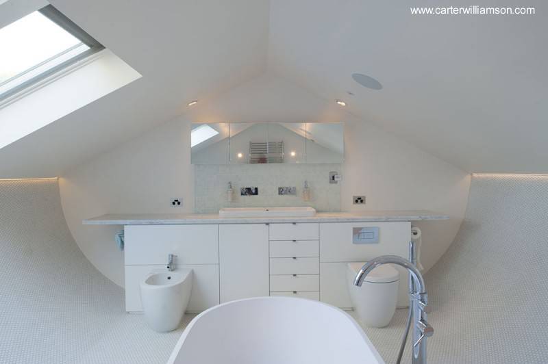 Los propietarios deseaban ampliar su Eden House para contar con más espacio, así es que encargaron a los diseñadores de Practice of Everyday Design la renovación del espacio arriba del garaje. Ellos deseaban conservar el aspecto típico del bungalow pero a la vez también darle un espacio tipo loft al cual se accede por una escalera casi escondida en el comedor.
