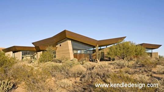 Diseñada por la firma de arquitectura Kendle Design, la casa está abierta a la luz del desierto y a las vistas pero mantiene privacidad de los habitantes en los alrededores.