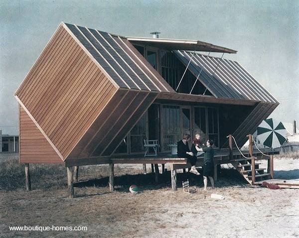 | Casa de playa de madera forma geométrica diseño original |