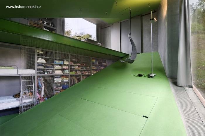 Esta obra de arquitectura checa en las afueras de Cernín, es toda una curiosidad que responde a un estilo de vida. Las ventanas de esta moderna casa muestran un escenario del hermoso lugar (la realidad) y cerrándolas permiten que el proyector despliegue escenas del cine (la fantasía).