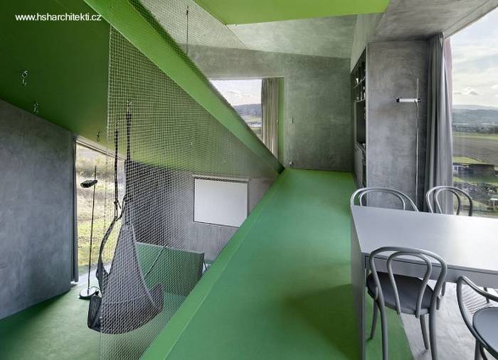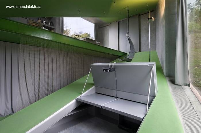 Es una obra de arquitectura moderna europeaubicada en República Checa, fue diseñada por requerimiento especial del propietario, se trata de una cabaña de concepto moderno y nada convencional.