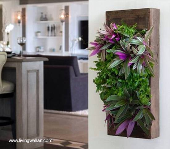 | Plantas decorativas en panel de pared, como cuadro en el living |