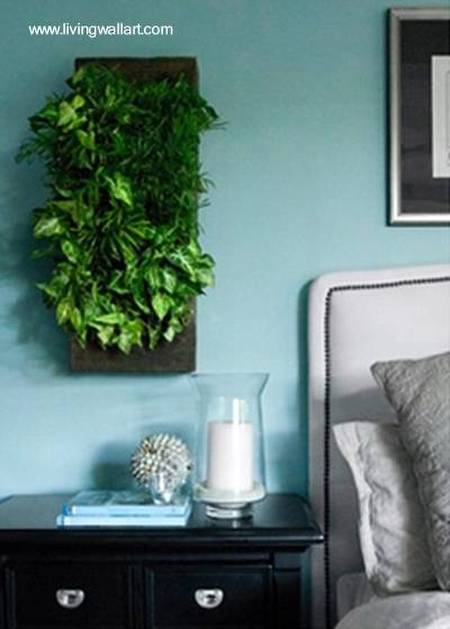 | Jardín vertical del tamaño de un cuadro decorativo en dormitorio |