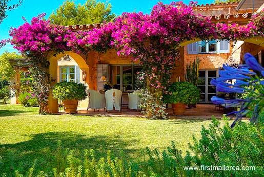Casa de campo tradicional cubierta de flores en Mallorca, España
