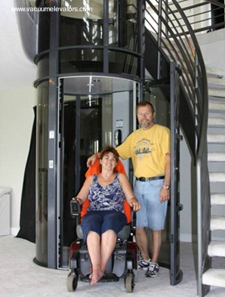 Es una solución a considerar seriamente para aplicar a los problemas de elevación, transporte vertical en la casa. Puede soportar dos personas y una silla de ruedas. El desplazamiento es suave y confortable. Se trata de una verdadera novedad ofrecida desde el mercado de los Estados Unidos.