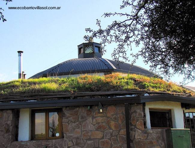 | Techo cupuliforme ecológico con tierra y plantado, en una cabaña de la villa |