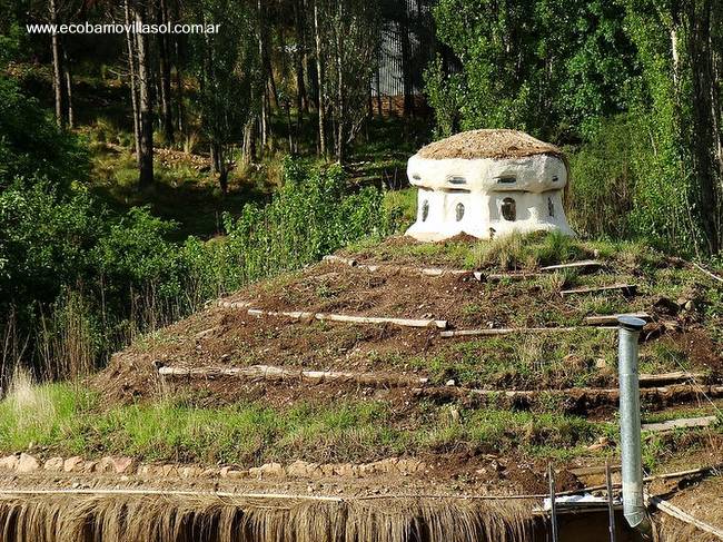 Si en el espacio elegido para levantar la casa hay una irregularidad o una gran roca, pasa a formar parte del diseño de la vivienda. esa es una condición en la eco villa donde se encuentran.