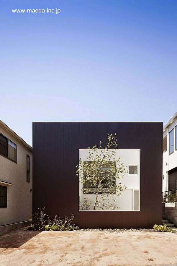 El interior de esta residencia minimalista japonesa está comunicado hacia adentro, fluido entre cuartos, aparentemente sin privacidad. Hacia afuera solamente hay una zona con abertura mayor con un espacio que hace de amortiguador entre el espacio afuera y dentro, se ve en la foto anterior.