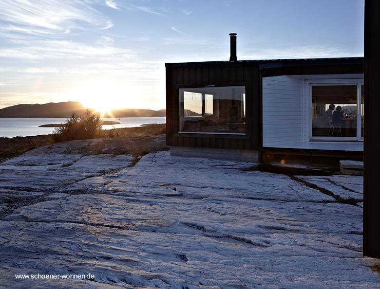 El ambiente en el que esta casa cabaña de diseño se encuentra es realmente muy frío durante el invierno. La casa está asentada sobre suelo de piedra y muy próxima al borde del mar.