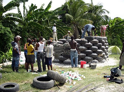 Fueron diseñadas por un arquitecto norteamericano que se ha especializado en este tipo de construcción. Están ayudando a solucionar problemas de vivienda en Haití. En los Estados Unidos hay una comunidad formada con estas casas pero sus diseños son más evolucionados, son construcciones amplias y completamente sustentables.