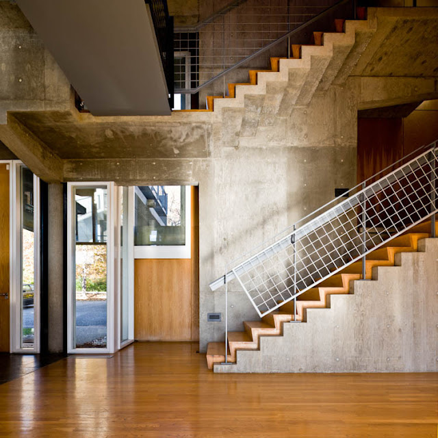 | Escalera interior de concreto, madera y acero |