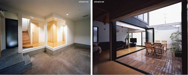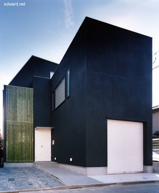 Vea otra casa urbana japonesa forma cuboide, original tatuada por fuera, que sirve de vivienda como espacio para trabajar en peluquería, siga el enlace a otra entrada de este blog.