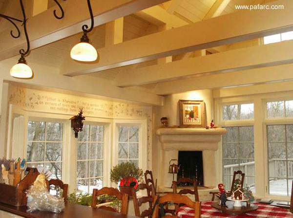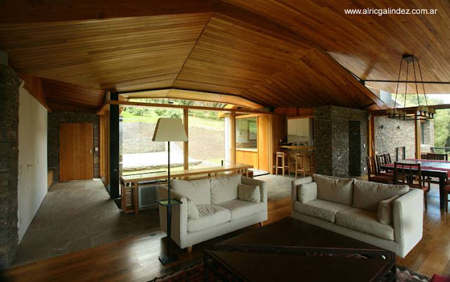 | Vista interior, sala de estar, cielorraso de madera |